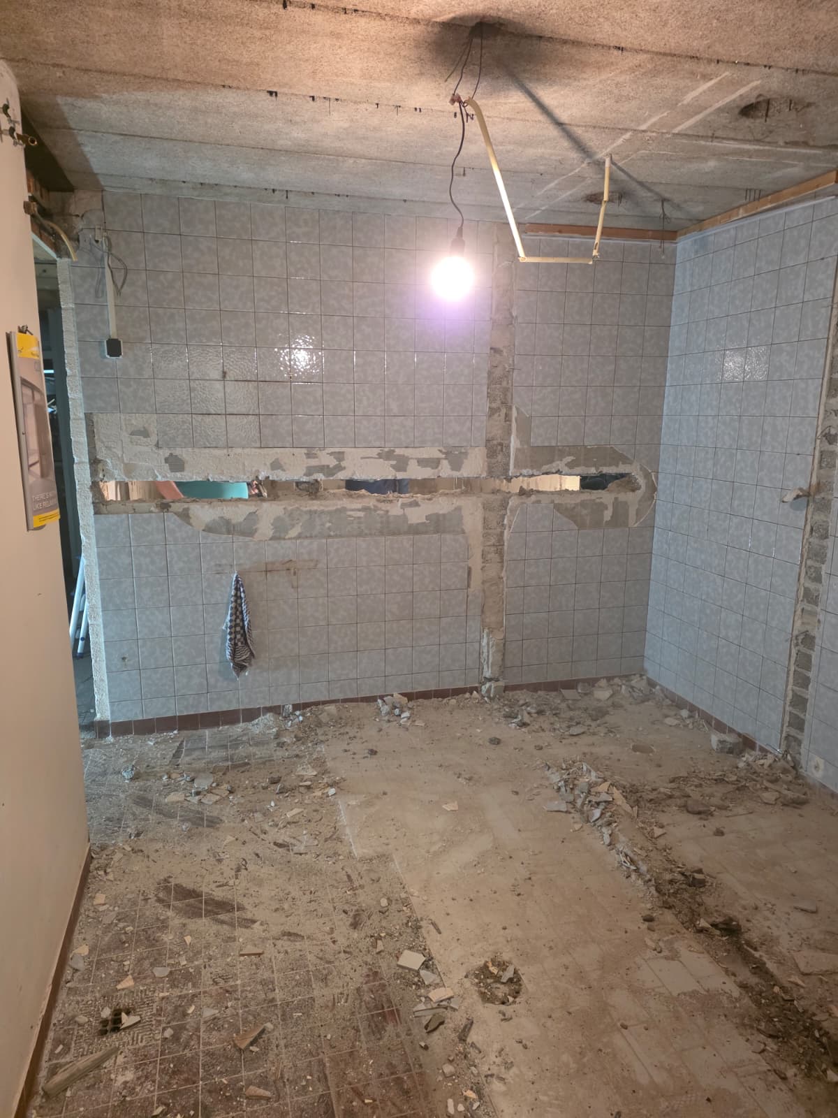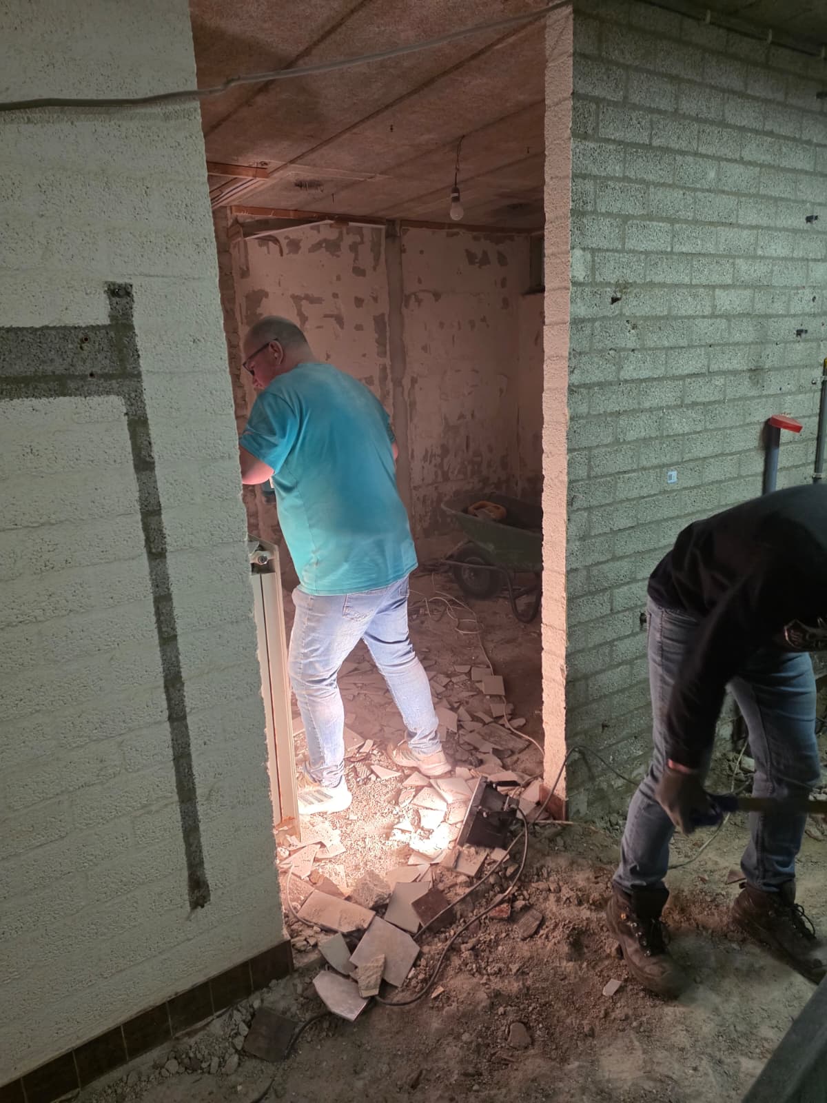 De WC muren zijn gesloopt en zelfs de vloeren zijn eruit gehakt. Deze laatste werkzaamheden waren eigenlijk bij de aannemer. Die gaat weer wat metselwerk hiervoor in de plaats doen, die we zelf later niet meer hoeven te doen.